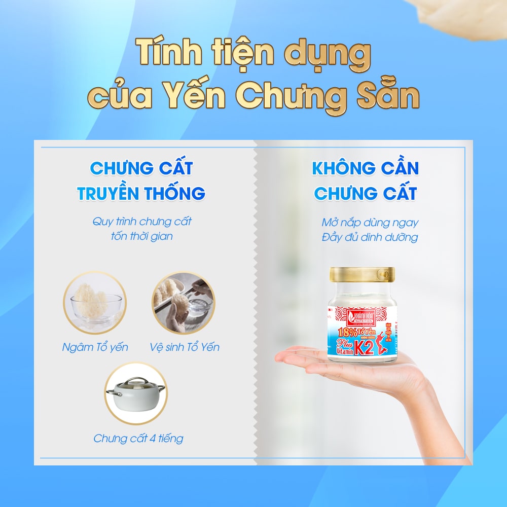 Hộp Quà Tặng Tổ Yến Sào 18% Bổ Sung Vitamin K2 Không Đường - Khánh Hòa Nutrition (Hộp 6 lọ x 70ml)