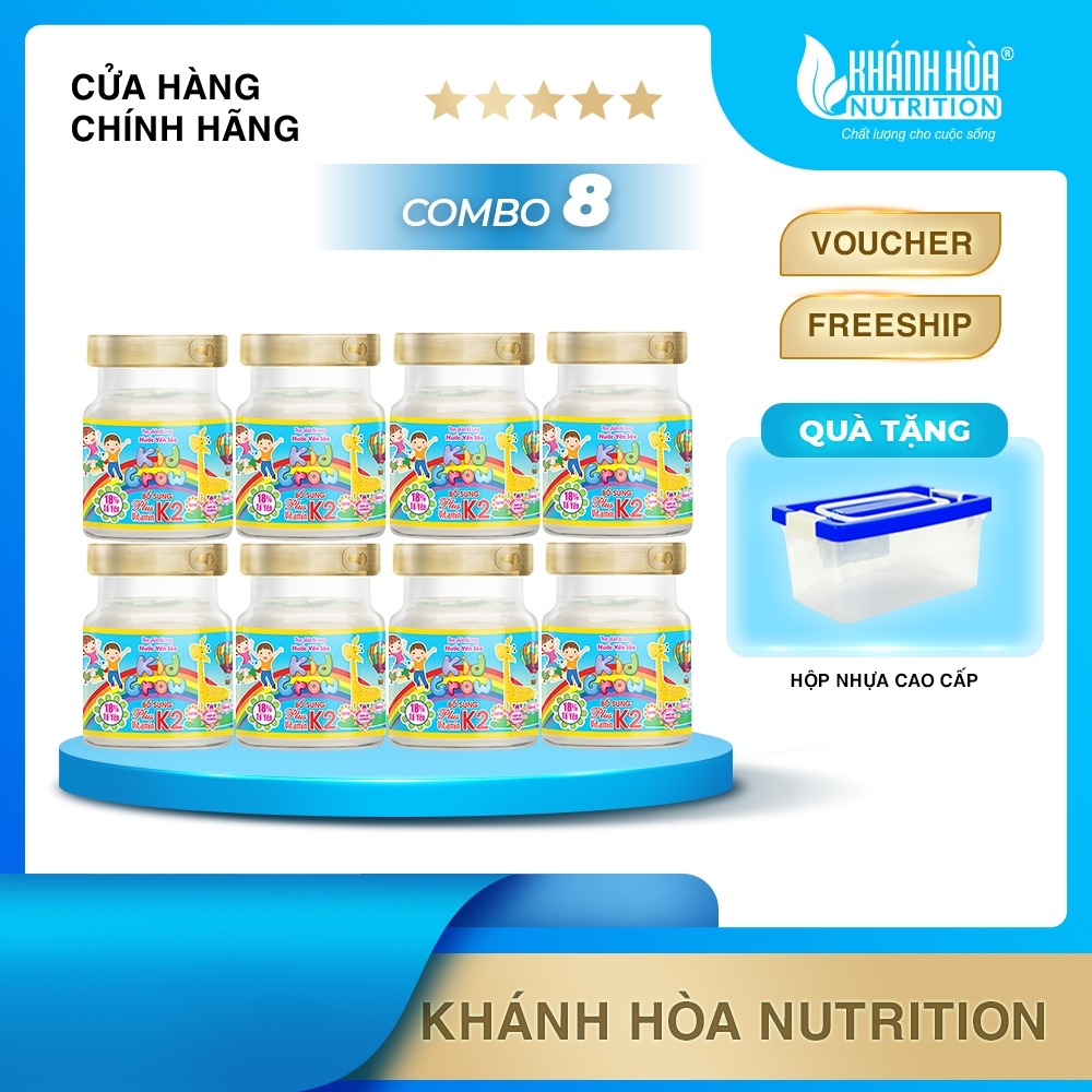 [TẶNG 1 HỘP NHỰA] Combo 8 Lọ Yến Kidgrow 18% Tổ Yến Bổ Sung Vitamin K2 - Khánh Hòa Nutrition - 8 Lọ x 70ml